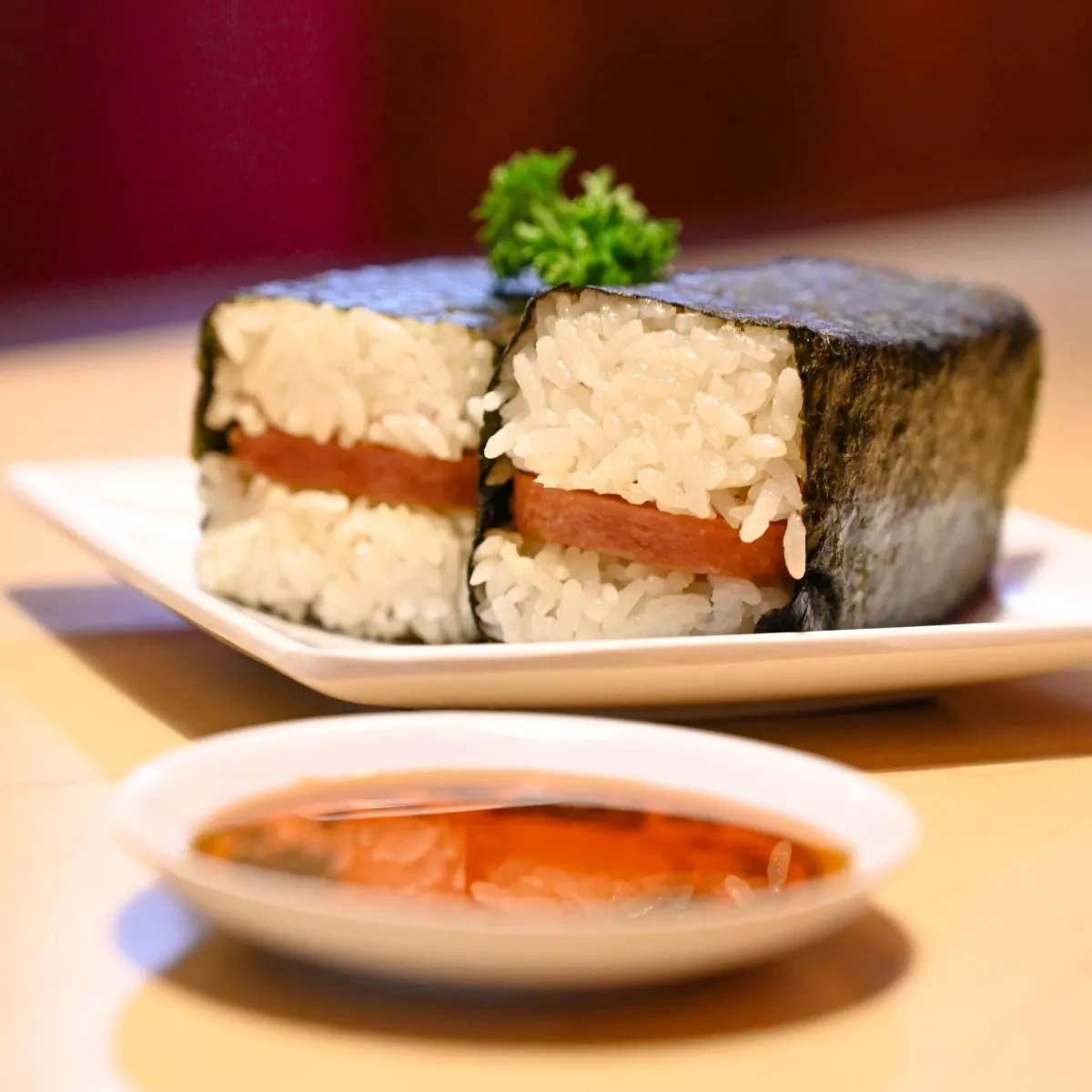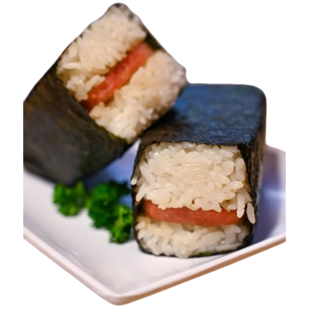 The ultimate Hawaiian classic—grilled Spam layered over rice and wrapped in nori for a perfect blend of savory and satisfying.