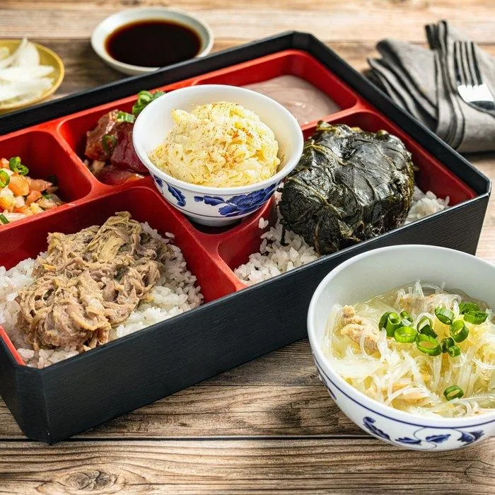Want to taste the best of Hawaii? Bobby’s Plate is your passport to flavor town. This bento box is packed with so much variety, you’ll be digging in and loving every bite. From tender Kalua pork to the deliciously fresh Lomi Salmon, and even a little Shoyu Poke for that extra zing – it’s a true celebration of Hawaiian cuisine. If you're in the mood to try a bit of everything, Bobby’s Plate has got you covered.